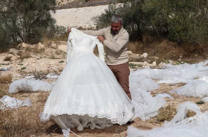 Sivas’ta araziye atılan bazıları parçalanmış, çok sayıda gelinlik bulundu.