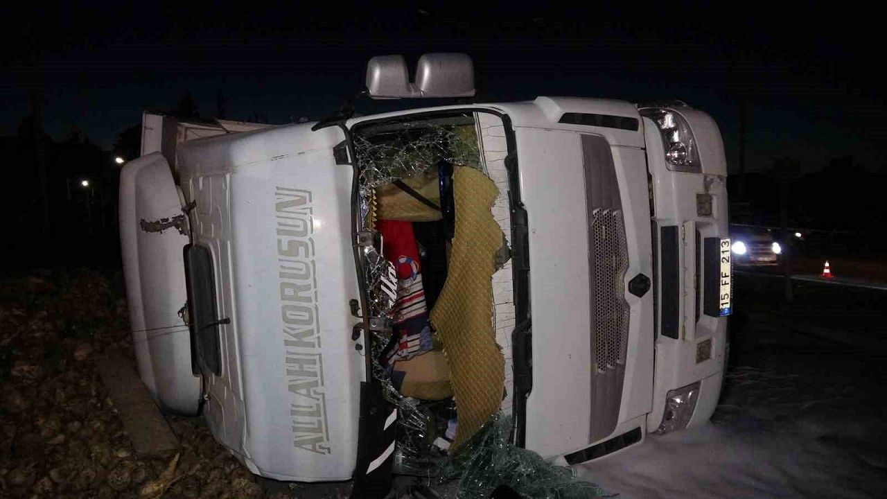 Kaza, 20 Eylül saat 19.15 sıralarında Burdur Fethiye Karayolu Bülent Ecevit Bulvarı üzerinde meydana geldi. Edinilen bilgiye göre, Ahmet Dikici idaresindeki 15 FF 213 plakalı pancar yüklü tır, sürücüsünün direksiyon hakimiyetini kaybetmesi sonucu kaldırıma çıkarak elektrik tellerine çarpıp devrildi.