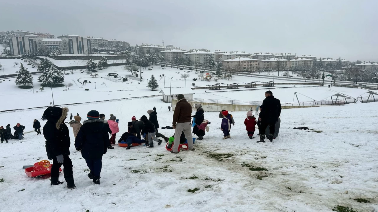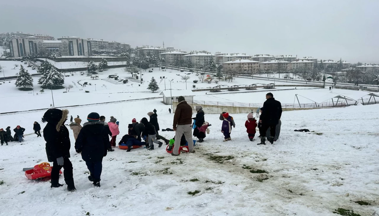 Olumsuz hava koşulları nedeniyle tatil edilen okulların ardından bazı aileler, çocuklarıyla birlikte kentin yüksek kesimlerindeki karlı alanlara gitti. Burada çocuklar, kızakla kaymanın tadını çıkardı.