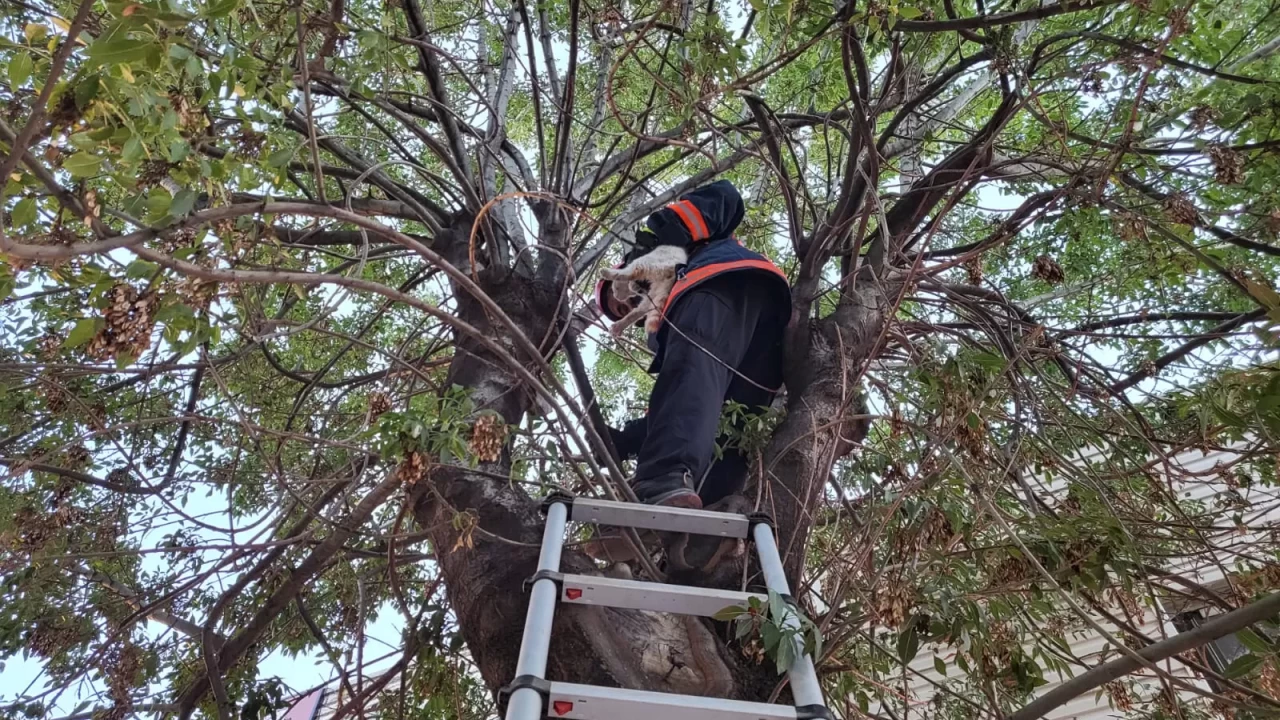 Sunguroğlu Mahallesi Muhsin Yazıcıoğlu Caddesi'nde ağaca çıkan kedi, çevredekilerin ihbarı üzerine olay yerine gelen Sungurlu Belediyesi itfaiye ekiplerince indirildi.