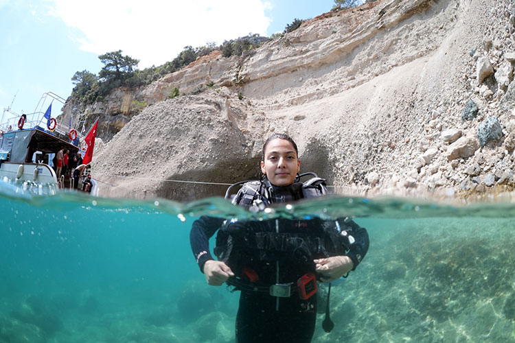 İlk kez dalış heyecanı yaşayan İnci İnci de depremlerden sonra Antalya'ya geldiklerini, okuluna burada devam ettiğini söyledi.
