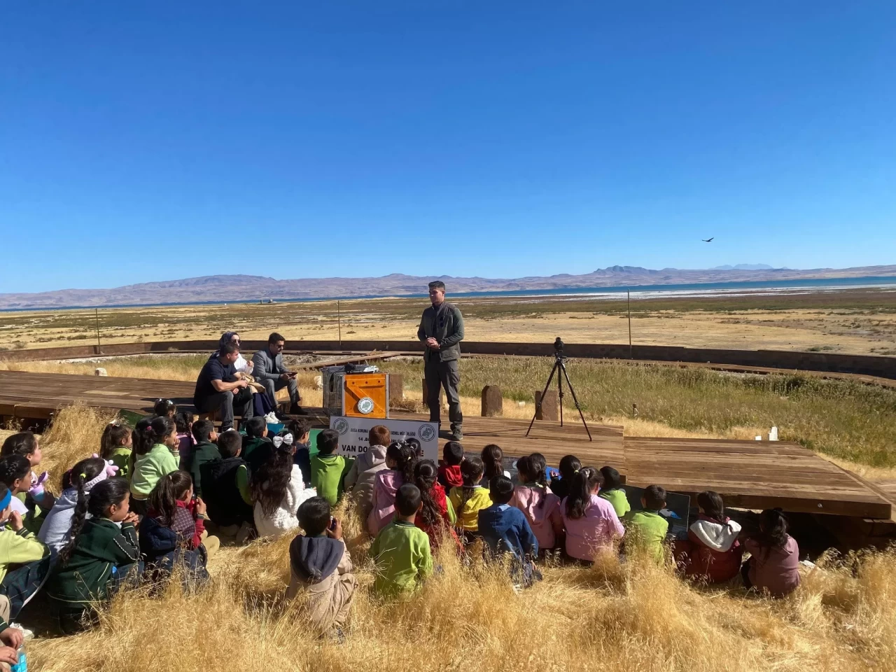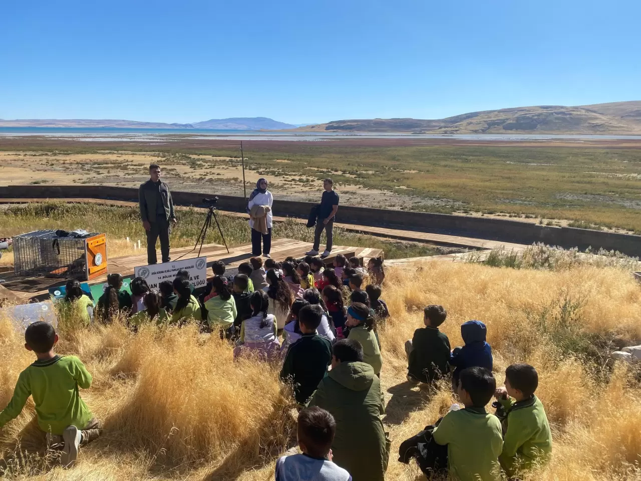 DKMP 14. Bölge Müdürlüğü’ne bağlı Erciş Şube Müdürlüğü ekipleri, "Tabiat Turizmi Uygulama Eylem Planı" kapsamında, Erciş Çelebibağı Vatan İlkokulu öğrencileri ve öğretmenleri ile birlikte Çelebibağı sazlıkları sulak alanında doğa yürüyüşü ve kuş gözlemi etkinliği düzenlendi. Öğrencilerin dikkat ve ilgi ile dinlediği etkinlikte biyolojik çeşitlilik ve biyolojik kaçakçılığın önemi, korunan alanlar, yaban hayatına ait bilgiler, yaban hayatının gözlenmesini sağlayan fotokapanlar hakkında bilgiler aktarıldı.