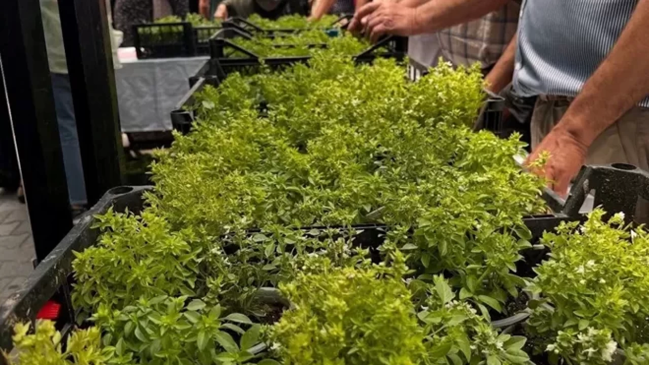Pazar yerinde dağıtımı yapılan fesleğenleri almak isteyen vatandaşlar, stant önünde uzun kuyruklar oluştururken, kimi vatandaş kokusu için kimileri ise sivrisineklerden korunmak için fesleğenleri aldığını söyledi.
