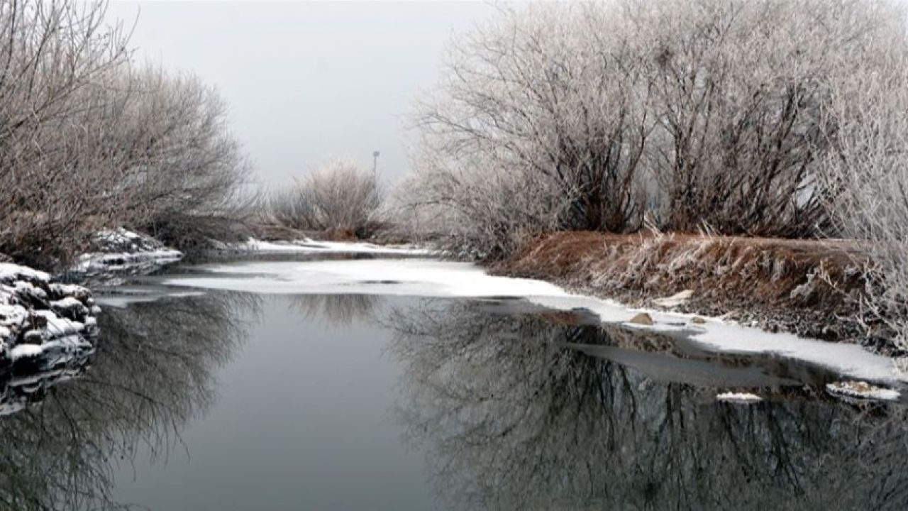 Ardahan'da soğuk nedeniyle kırağı tutan ağaçlar, kartpostallık görüntülerde oluşturdu.