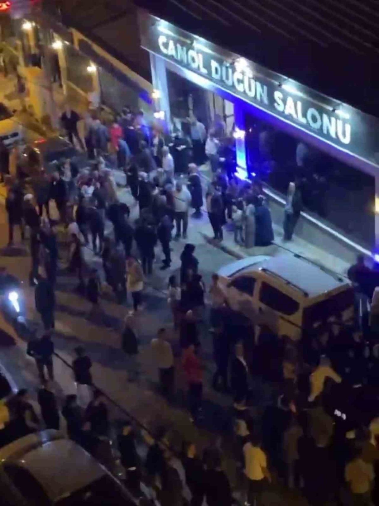 Konak Mahallesi’nde bulunan düğün salonunda meydana gelen olayda taraflar arasında tartışma çıktı. Yerini kavgaya bırakan tartışma bir anda büyüyerek sokağa taştı. Tekme ve yumrukların havada uçuştuğu kavgada ortalık adeta savaş alanına dönerken durumun haber verilmesi üzerine bölgeye polis ekipleri sevk edildi. Ekiplerin zorlukla müdahalede bulunduğu kavga son bulurken, o anlar cep telefonu kamerasına yansıdı. Olaya ilişkin inceleme başlatıldı. İHA