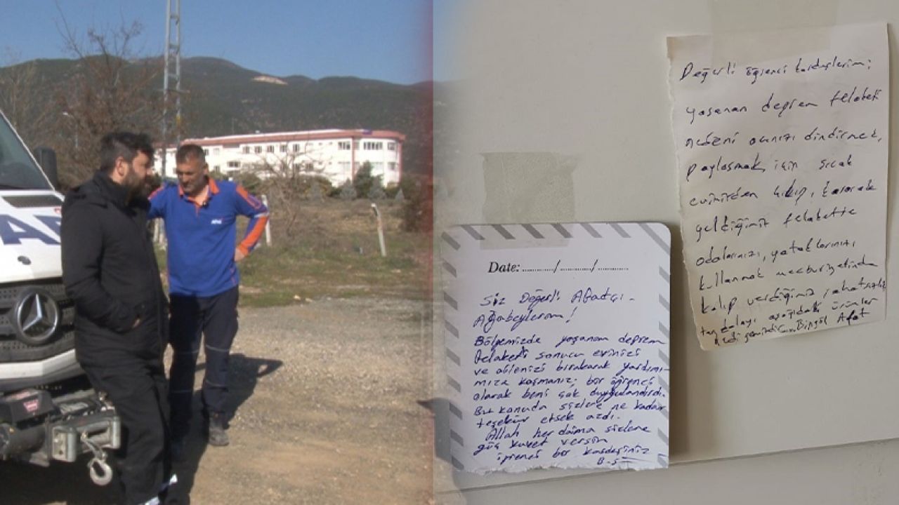 AFAD gönüllüsü Ömer Yılmaz, ‘'Sabah Bingöl'e döneceğimiz haberi gelince kriz merkezine vedalaşmak amacıyla koordinasyon merkezine gittik. Daha önceki depremlerde dışarıda, çadırlarda yatardık, bu depremde ise yurtta binalarda kalmanın heyecanı ile not yazmak istedik. Notta öğrencilerden helallik istedik. Kullanmış olduğumuz yatakları, yorganları yıkatmak isterdik. Bunun için imkanımız yoktu. Bizde elimizdeki erzakları bıraktık çıktık. Şarj makinemizi unuttuğumuz fark edince tekrar geri yurda döndük. Eşyalarını almaya gelen öğrencilerimizden biri bu bıraktığımız notun karşılığında bize cevap yazmış. Bu cevap bizi çok duygulandırdı. Yapmış olduğumuz çalışmanın, emeğin, mücadelenin emeğinin karşılığında bu notu görmemiz bizi çok heyecanlandırdı'' dedi. Gönüllü İbrahim Bukan ise ‘'Allah böyle bir felaketi bir daha göstermesin. Depremin olduğu ilk gün. Bingölden Afad'a geçtik, hemen bölgeye sevk edildik. 2-3 gece hiç yatmadık. O ortamı anlatmak mümkün olmuyor, yaşamak gerekir. Giderken notla karşılaştık. Çok onurlandık. Bir kardeşimizin bizi gurulandırması çok memnun olduk. Kardeşimize teşekkür ediyoruz. Tüm kardeşlerimize teşekkür ediyoruz, onların yataklarını paylaştı. Biz de onlara küçük de olsa hediye bıraktık. Yanımızdaki erzaklardan bıraktık'' şeklinde konuştu.