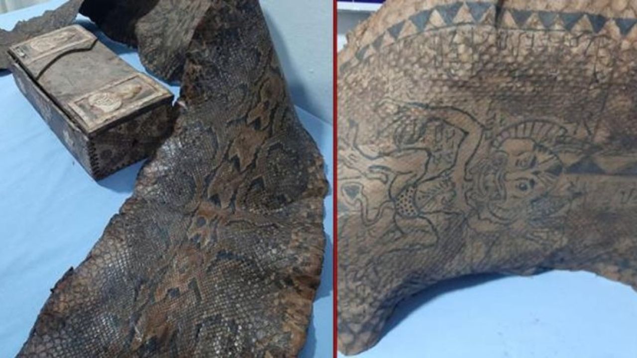 Yapılan titiz çalışma sonucu M.K. ve M.E isimli 2 şahsın üzerinde İbranice yazıların ve şeytan figürlerinin bulunduğu piton yılanı derisini satmaya çalıştığını tespit etti.