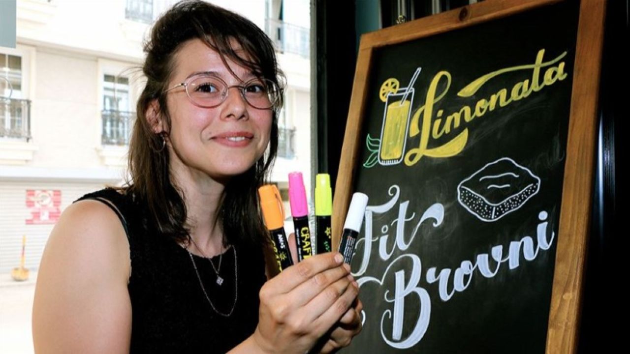 Eskişehir'de yaşayan Dilruba Güneysu, kaligrafi tutkusunu işletmelerdeki karatahta üzerine tebeşir ya da akrilik boya kalemleri ile yaptığı çizimlerle geçim kaynağına dönüştürdü.