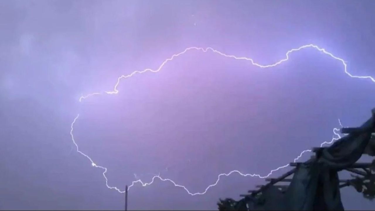 Bir vatandaş tarafından çekilen görüntüde, şimşek ışıklarının Türkiye haritasına benzer şekil oluşturduğu kameraya yansıdı.