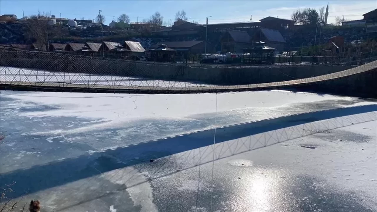 İl merkezinden geçen Kura Nehri ile Alabalık Deresi’nin yüzeyi buzla kaplandı.