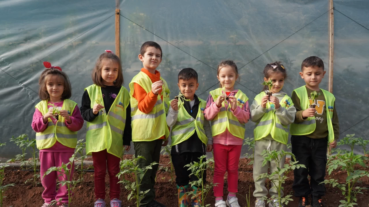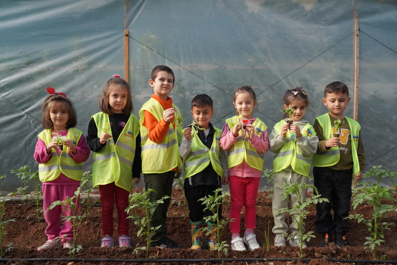 Erdemli Belediyesi’nin çocuklar için kurduğu Çocuk Serası’nda Şehit Musa Özallar Kreş öğrencileri düzenli eğitim alıyor, tohum atılmasından, hasat edilmesine kadar üretim sürecinin her aşamasında yer alıyor.