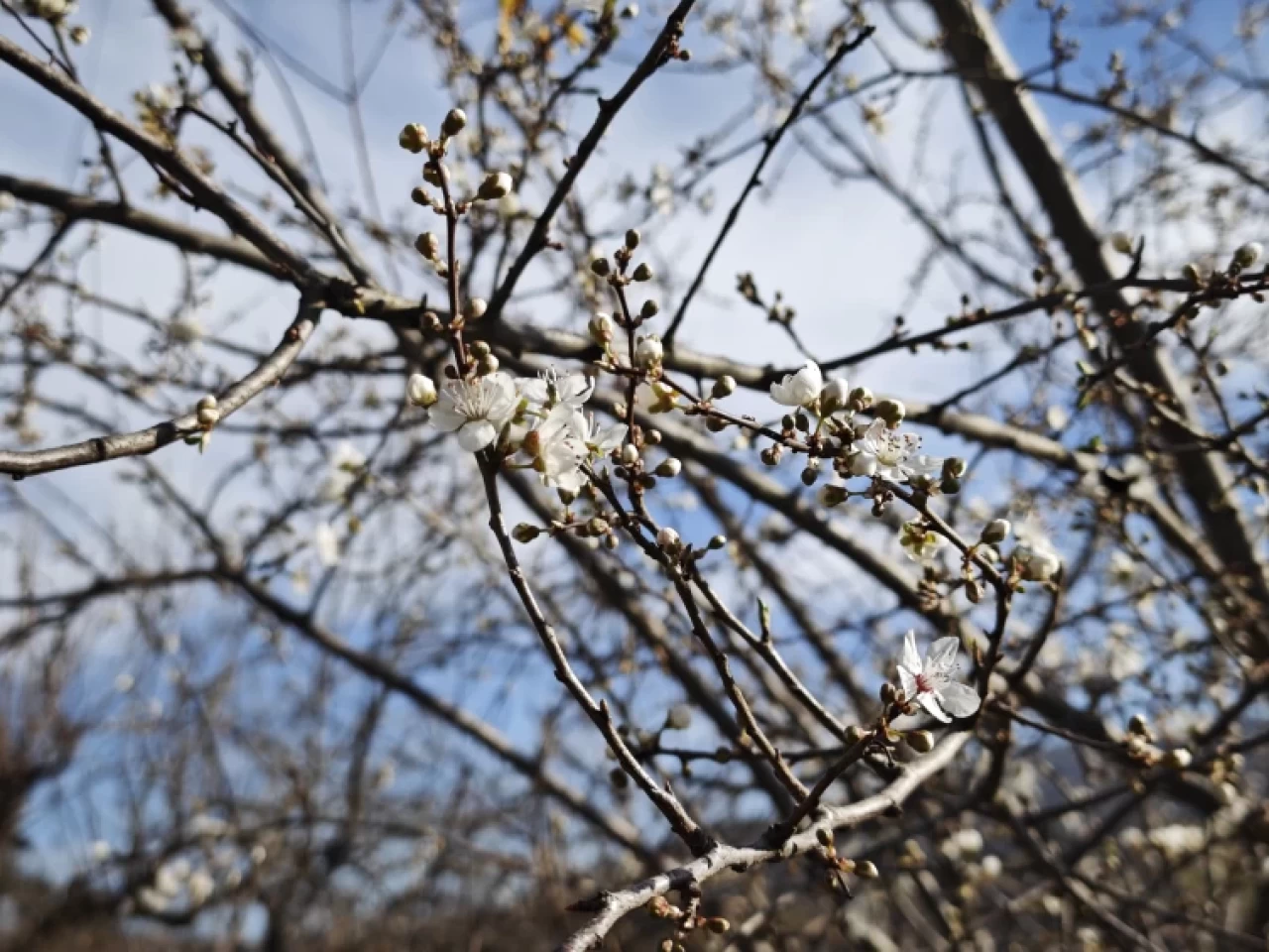 Hava sıcaklığının 15 dereceye ulaştığı Samsun'un Yakakent ilçesinin Gündüzlü Mahallesi'nde, erik ağaçları şubat ayında çiçek açtı.