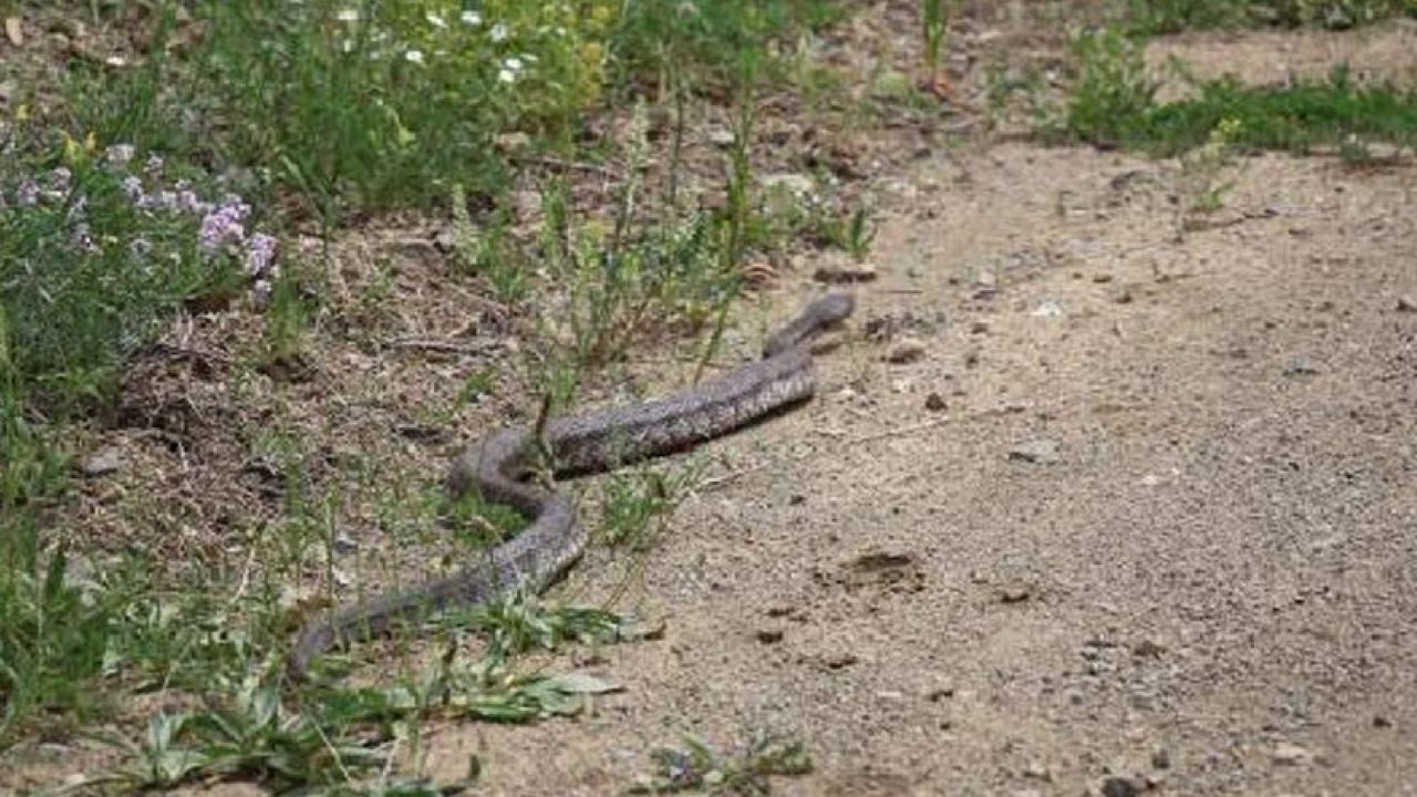Erzurum'un Oltu ilçesinde doğa yürüyüşüne çıkan bir grup, 1,5 metre uzunluğunda dünyanın en zehirli yılanlarından Hopa engereği ile karşılaştı.