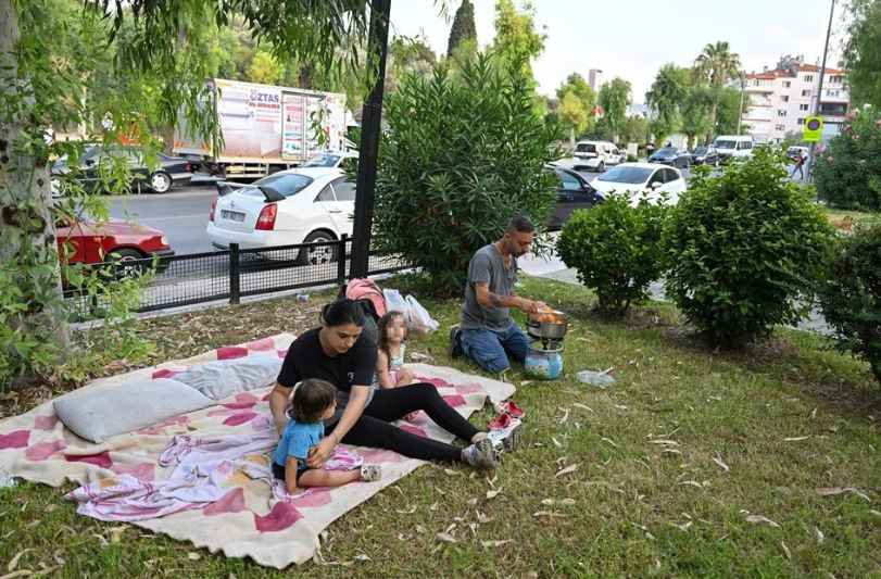 Tanıdıkları ve çevredekilerin yardımıyla bir süre barınma ihtiyaçlarını gideren ve 1 aydır bütçelerine göre ev bulamayan Tıraş ailesi, son 10 gündür Şehit Üsteğmen Yunus Keskin Parkı'na serdikleri battaniyenin üzerinde yaşamını sürdürüyor.