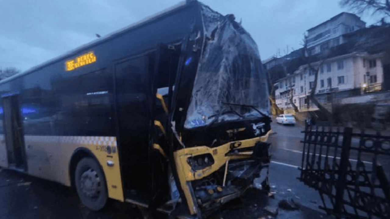 Fatih'te iki İETT otobüsü çarpıştı. İETT otobüslerinden biri refüje çarparak durabildi.