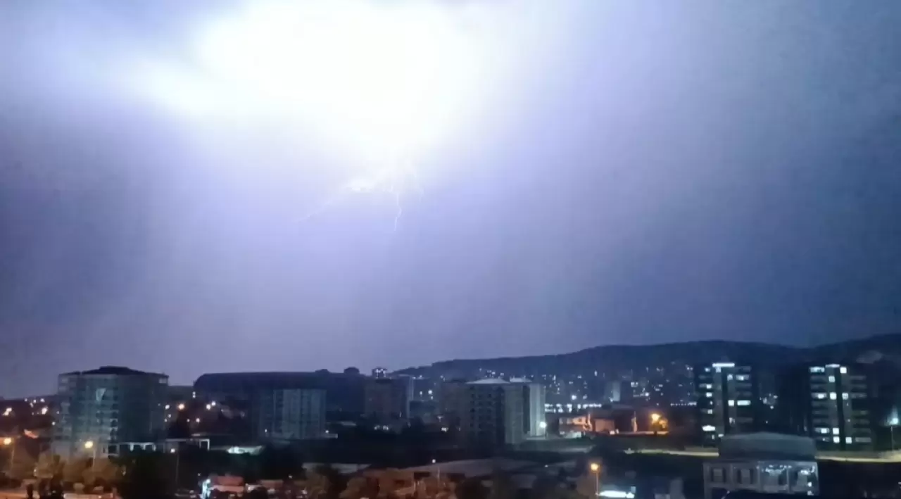 Yağış nedeniyle cadde ve sokaklarda su birikintileri oluşurken trafikte de kısa süreli aksamalar oldu. Sağanak ve dolu sonrası çakan şimşekler ise adeta geceyi gündüze çevirdi.