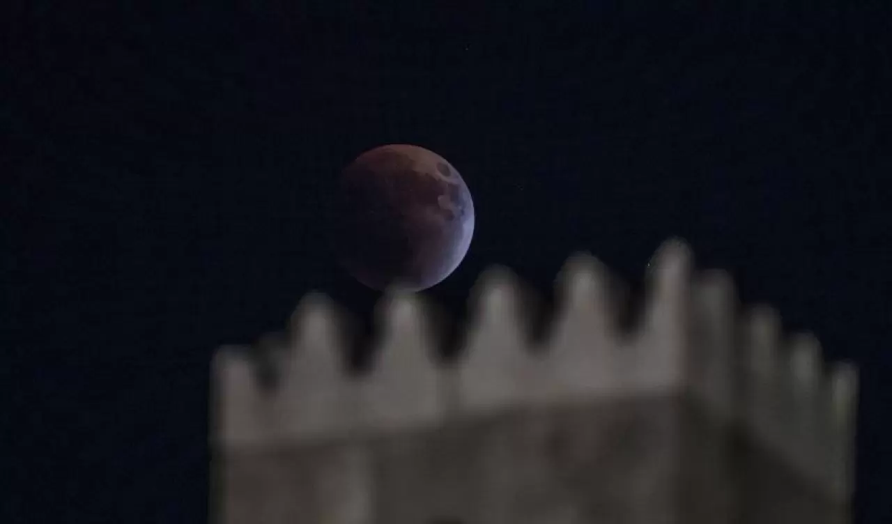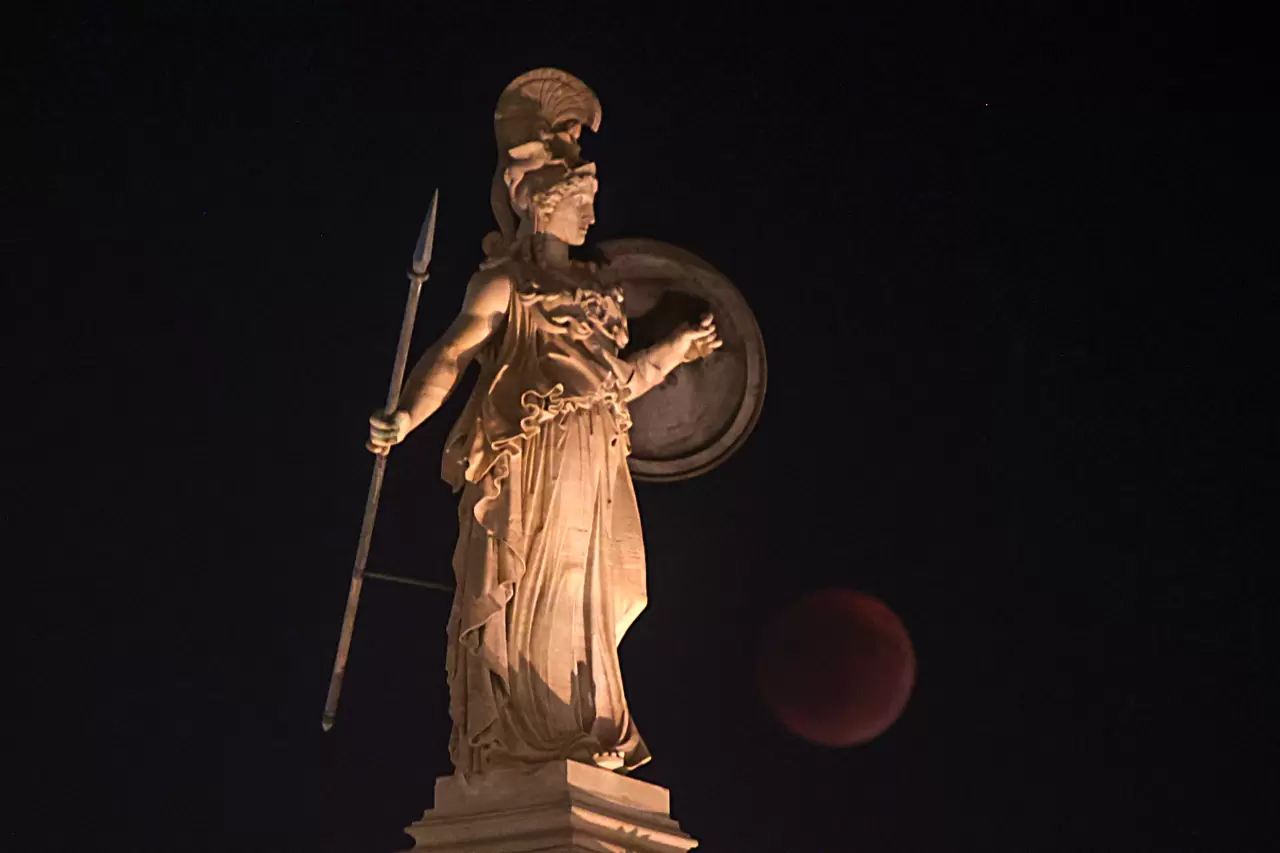 Kırmızı renginden dolayı “Kanlı ay” olarak da bilinen dolunay, tutulma sırasında Yunanistan'ın başkenti Atina'dan görüntülendi.