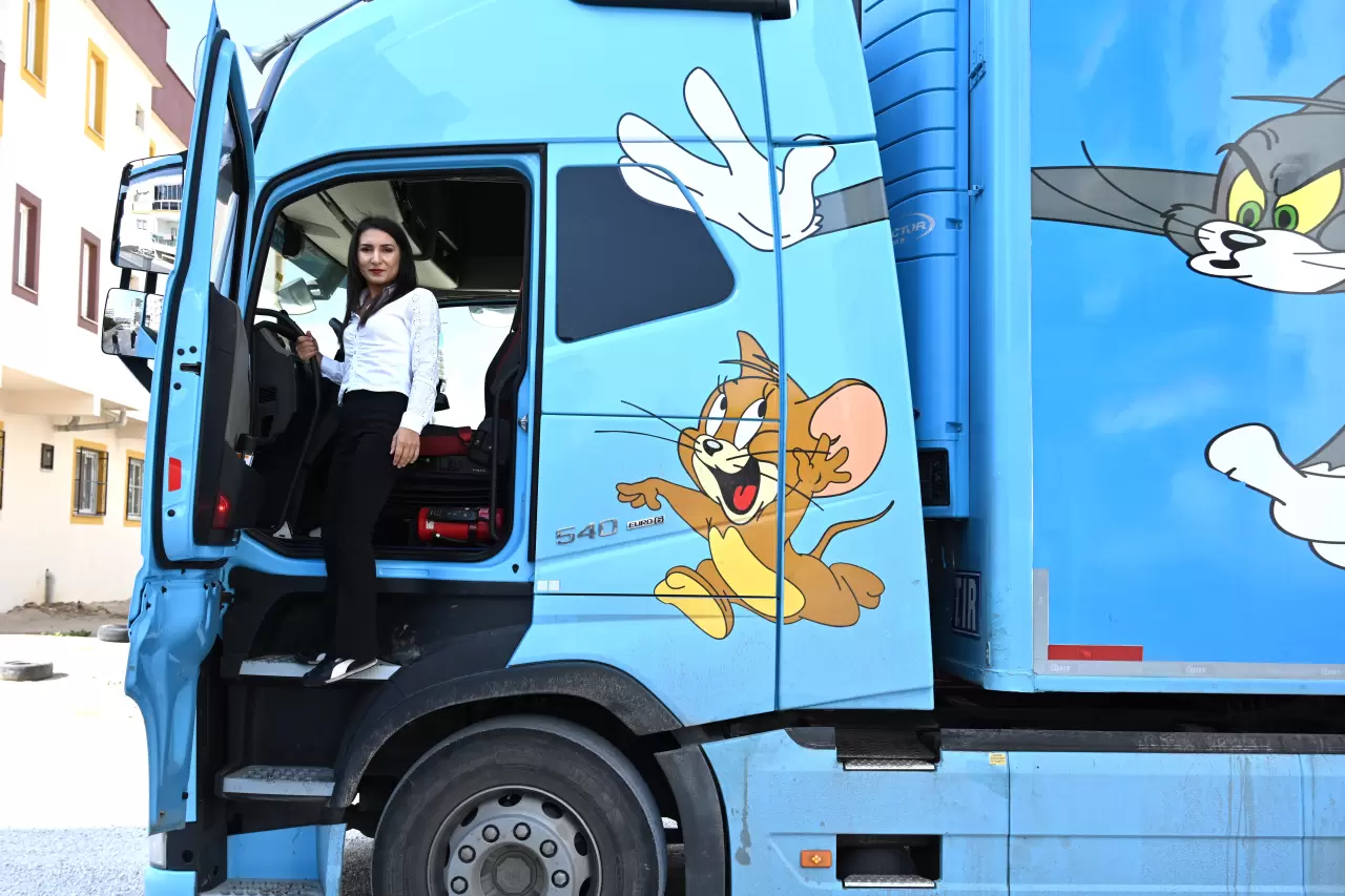 Osmaniye'nin Kadirli ilçesinde, tır şoförü kocasıyla yaptığı seyahatlerden etkilenerek bu işe olan ilgisi artan Handan Benli, 2 yıldır şehirler arası yollarda direksiyon başında.