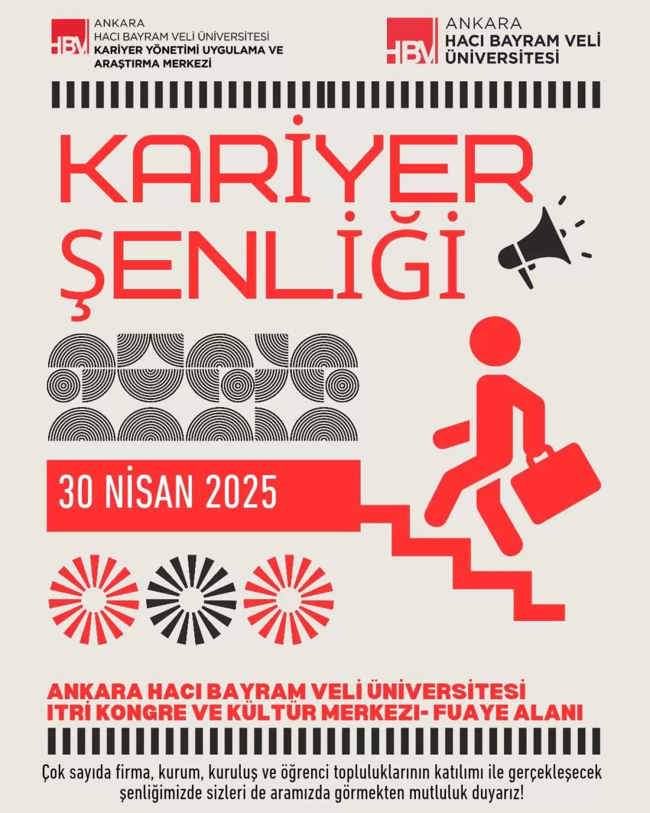 Merkez Müdürü Doç. Dr. Aybüke Büyükçelebi, Ankara Hacı Bayrım Veli Üniversite tarafından hayat bulan Kariyer Fuarına, profesyonel hayatla buluşmak isteyen gençleri ve onlarla bir araya gelmek isteyen tüm sektör temsilcilerini davet ediyor.