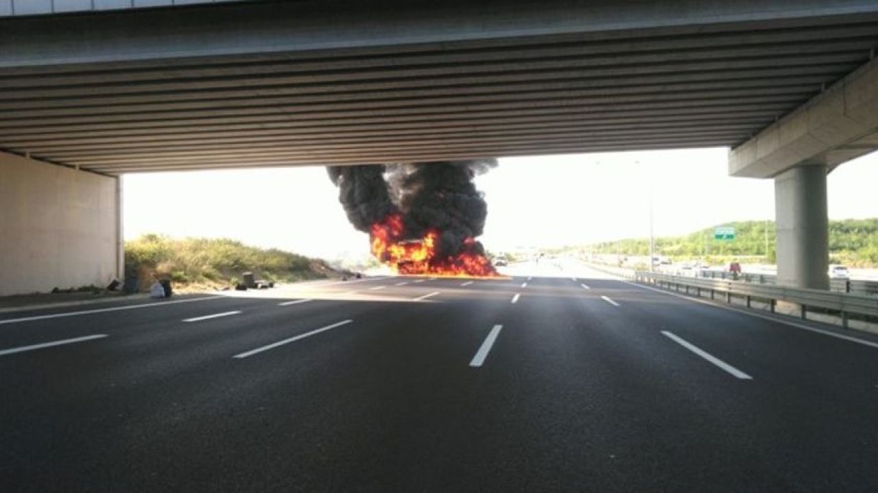 Çekmeköy mevkiinde Kuzey Marmara Otoyolu'nda seyir halindeki Diyarbakır-İstanbul seferini yapan yolcu otobüsünün motor bölümünde yangın çıktı.