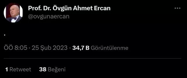 Prof. Dr. Övgün Ahmet Ercan'ın bu açıklamasının peşinden yaptığı diğer paylaşıma "nokta" koyması dikkatlerden kaçmadı.
