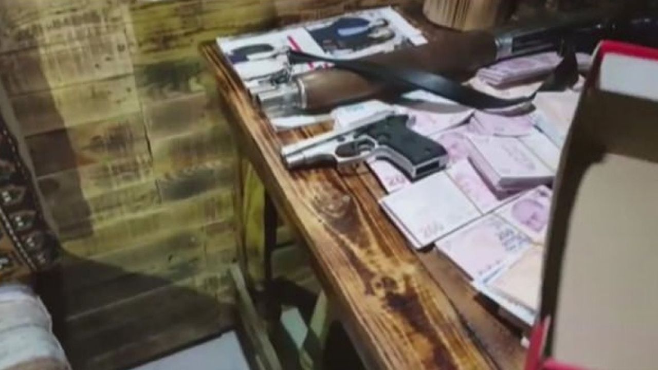 İş yerinde yapılan aramalarda; gizli bir bölmelere saklanmış 2400 adet sahte 200 TL, 100 adet sahte 100 TL, 200 adet sahte 50 TL olmak üzere toplam sahte 500 bin Türk Lirası ile 4 ruhsatsız tabanca ile ruhsatsız av tüfeği ele geçirildi.