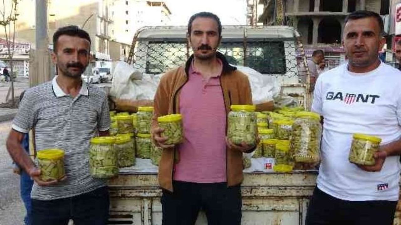 Hakkari'de 3 arkadaş, kanser hastalığına iyi geldiği tespit edilen uçkun bitkisinin turşusunu yaptı.