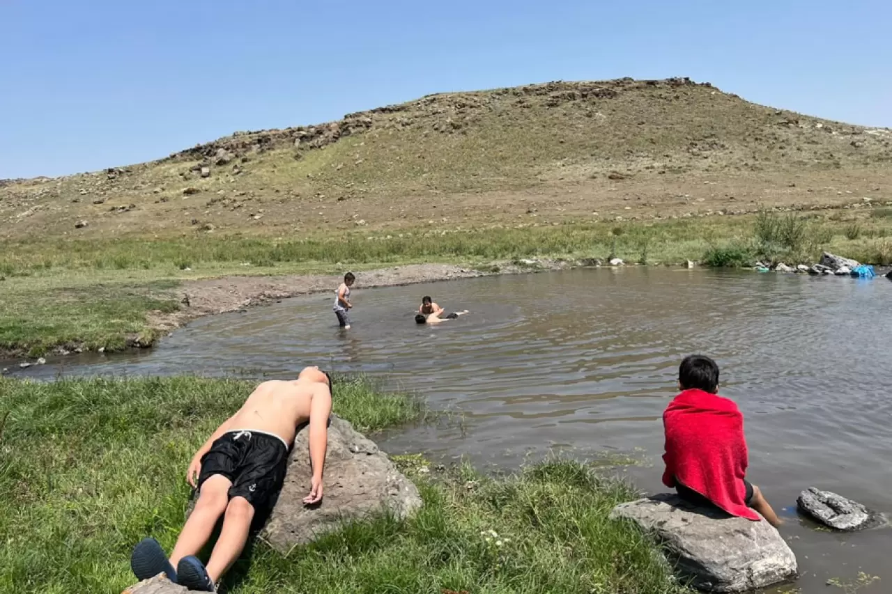 Kavurucu sıcakların etkisi altında olan Kars'ta, sıcaktan bunalan çocuklar serinlemek için çareyi derede buldu. Kendilerini derenin serin sularına bırakan çocuklar hem eğlendi, hem de gönüllerince yüzerek serinleme imkanı buldu.