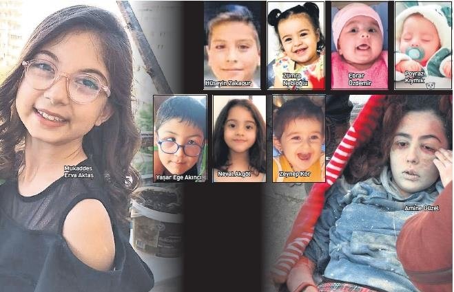 Kahramanmaraş merkezli depremler sonrası enkazdan çıkarıldıktan sonra kaybolan çocukların hastanelerde hayatlarını kaybettiği öğrenildi. Kahramanmaraş'ta deprem gecesi enkazdan sağ olarak çıkarılıp ambulansla hastaneye götürülen ve bir daha haber alınamayan 10 yaşındaki Mukaddes Erva Aktaş'tan acı haber geldi. Küçük kızın, hastanede yaşamını yitirince yakınlarına ulaşılamadığı için defnedildiği belirlendi. 26 gündür kızının izini süren baba Abdullah Aktaş, "Kızımı kaybettik. Cenazesini kimsesizler mezarlığında bulduk. Çok üzgünüz" dedi. Hatay'da 7 Şubat'ta enkazdan sağ kurtarılan ancak elleri ve ayakları kırıldığı için helikopterle Adana'ya gönderilen Amine Erva Güzel'den (12) de o günden sonra haber alınamamıştı. Ailesinin günlerce aradığı Amine Erva'nın da sevk edildiği Adana'da yaşamını yitirdiği ve kimliği belirlenemediği için defnedildiği anlaşıldı.