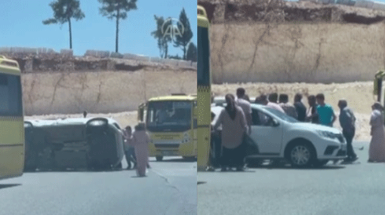 Çevrede bulunan yaklaşık 15 kişi, otomobilin içindekileri çıkardıktan sonra otomobili iterek düzeltti.