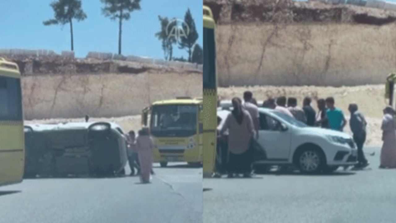 Gaziantep'te karıştığı trafik kazasında yan yatan otomobili, çevrede bulunan vatandaşların düzeltmesi kameralara yansıdı.
