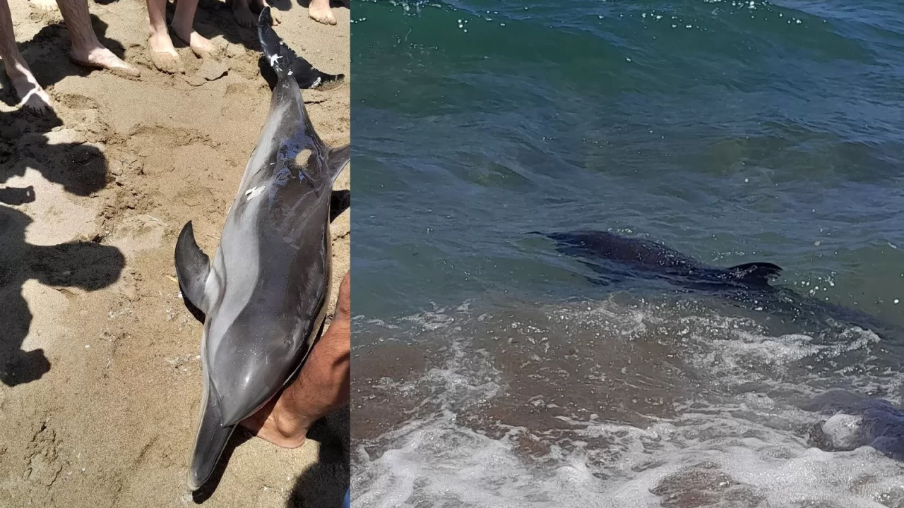 Mersin'de kıyıya vuran yunus sahildeki vatandaşlar ve görevliler tarafından tekrar denize salındı.