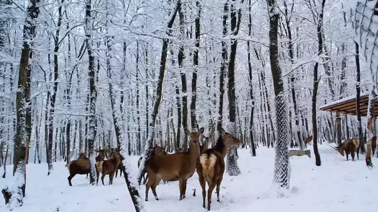 Hobit evleri ve ağaçlar karla kaplandı. Geyikler ise karlı ortamda sürü halinde gezinirken görüldü. Ortaya çıkan seyirlik manzara dronla da görüntülendi.