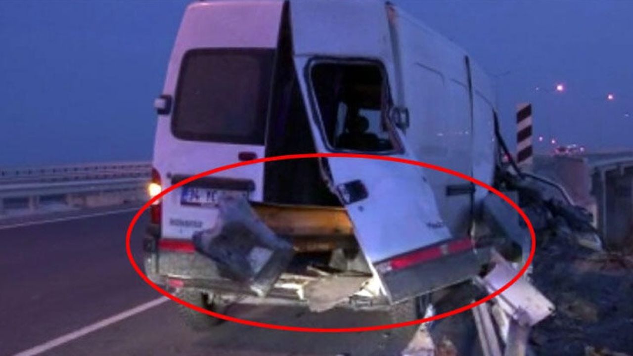 İddiaya göre, Y.Ç. (29) idaresindeki 34 YC 3809 plakalı kapalı kasa ticari araç yolda seyir halindeyken sürücüsünün direksiyon hakimiyetini kaybetmesi sonucu yol kenarında bulunan bariyerlere adeta ok gibi saplandı. Kazada araç içerisinde bulunan sürücü Y.Ç., D.A. (20) ve M.Ç.(9) yaralandı.