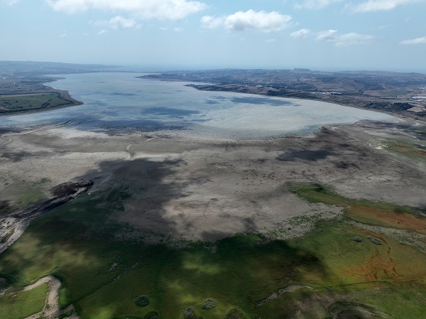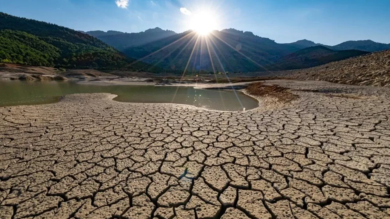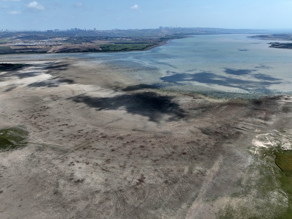 Suların çekildiği yerlerde toprağın çatladığı ve çevredeki plastik atıklar gün yüzüne çıktı.