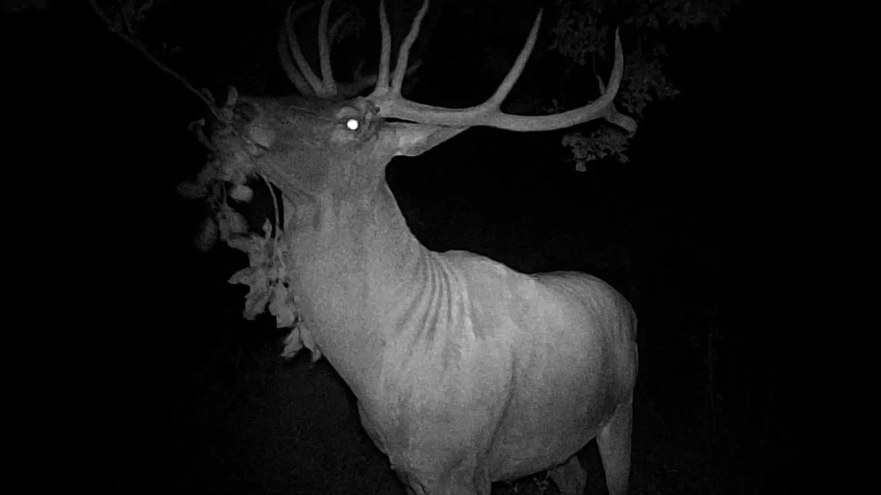 Bu durumun nedenini öğrenmek için bahçeye fotokapan yerleştiren Öztürk ve Uğraş, kayıtları izlediklerinde, bir kızıl geyiğin ağaçlardaki meyveler ve dalları yediğini gördü.