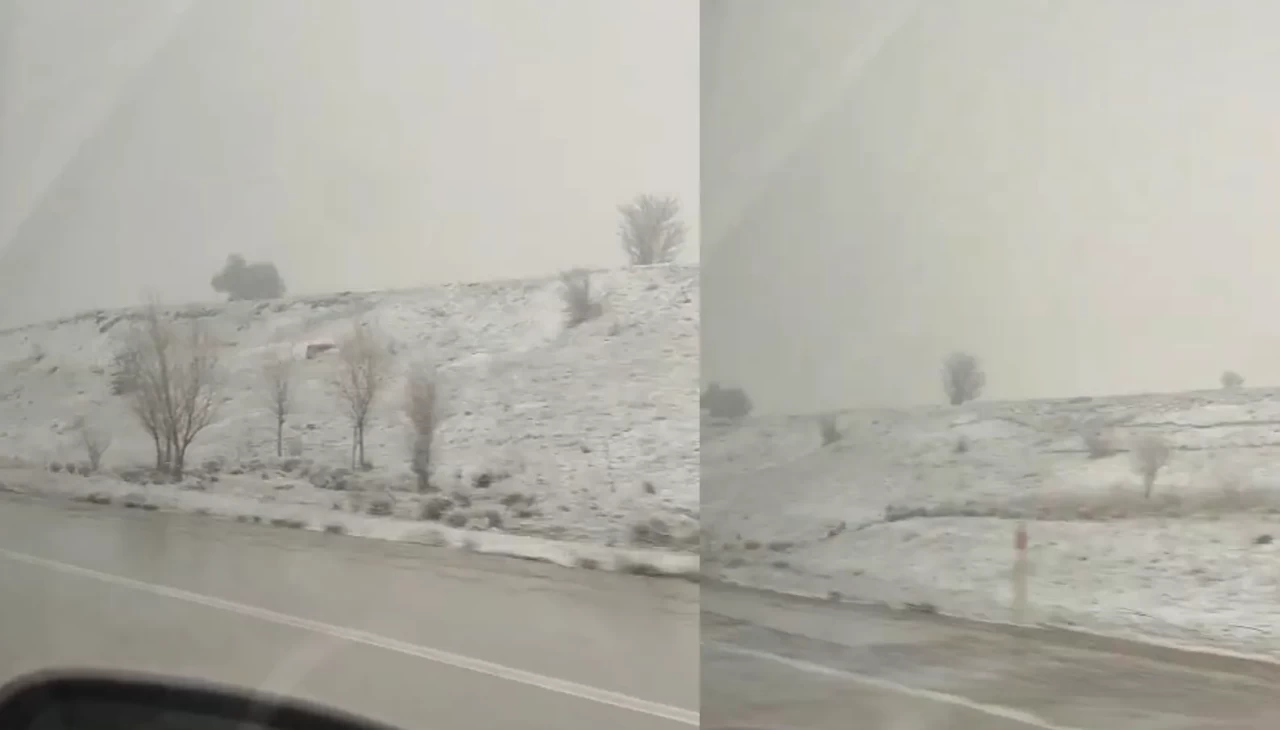 Kar yağışı, Uşak’tan Eskişehir istikametine seyahat eden bir vatandaş tarafından cep telefonu kamerasıyla kaydedildi.