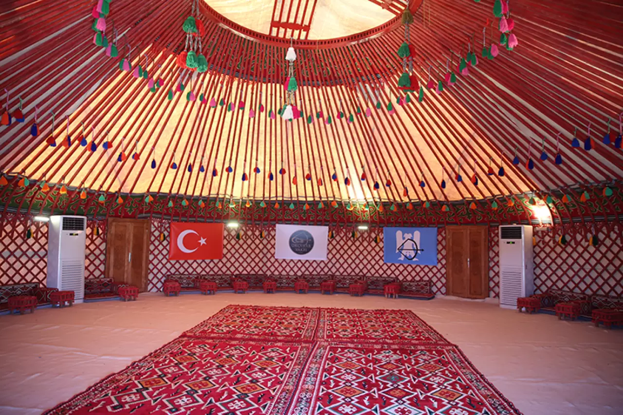 Üzerinde ve iç kısmında Selçuklu motiflerinin yer aldığı keçeden yapılmış Han Otağı ile 16 tematik çadırın kurulduğu milli park, 23-26 Ağustos'ta düzenlenecek birbirinden renkli etkinlikler için hazır hale getirildi.