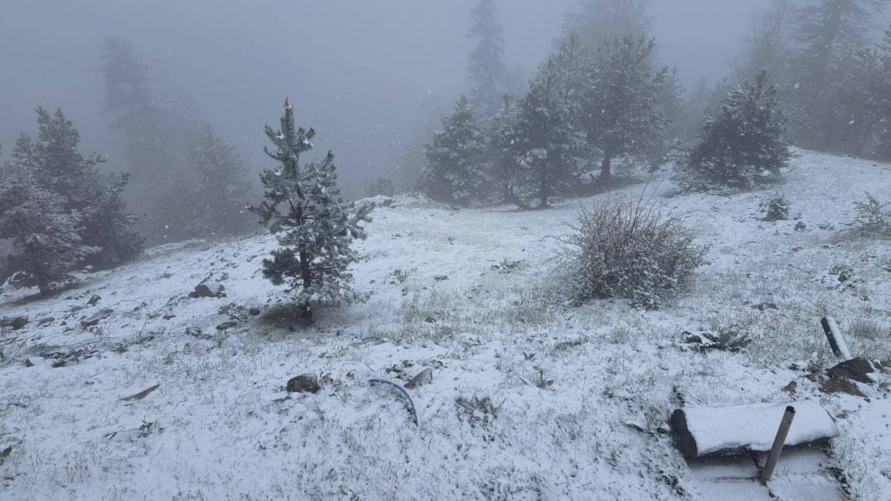 Bolu'da Köroğlu Dağı'nın 2200 metrelik zirvesindeki Kartalkaya ile Aladağ, Sarıalan ve Yedigöller bölgesinde sabah saatlerinde başlayan sağanak yerini kar yağışına bıraktı. Yağışın aralıklarla etkili olduğu bölgede bazı alanlar beyaz örtüyle kaplandı.