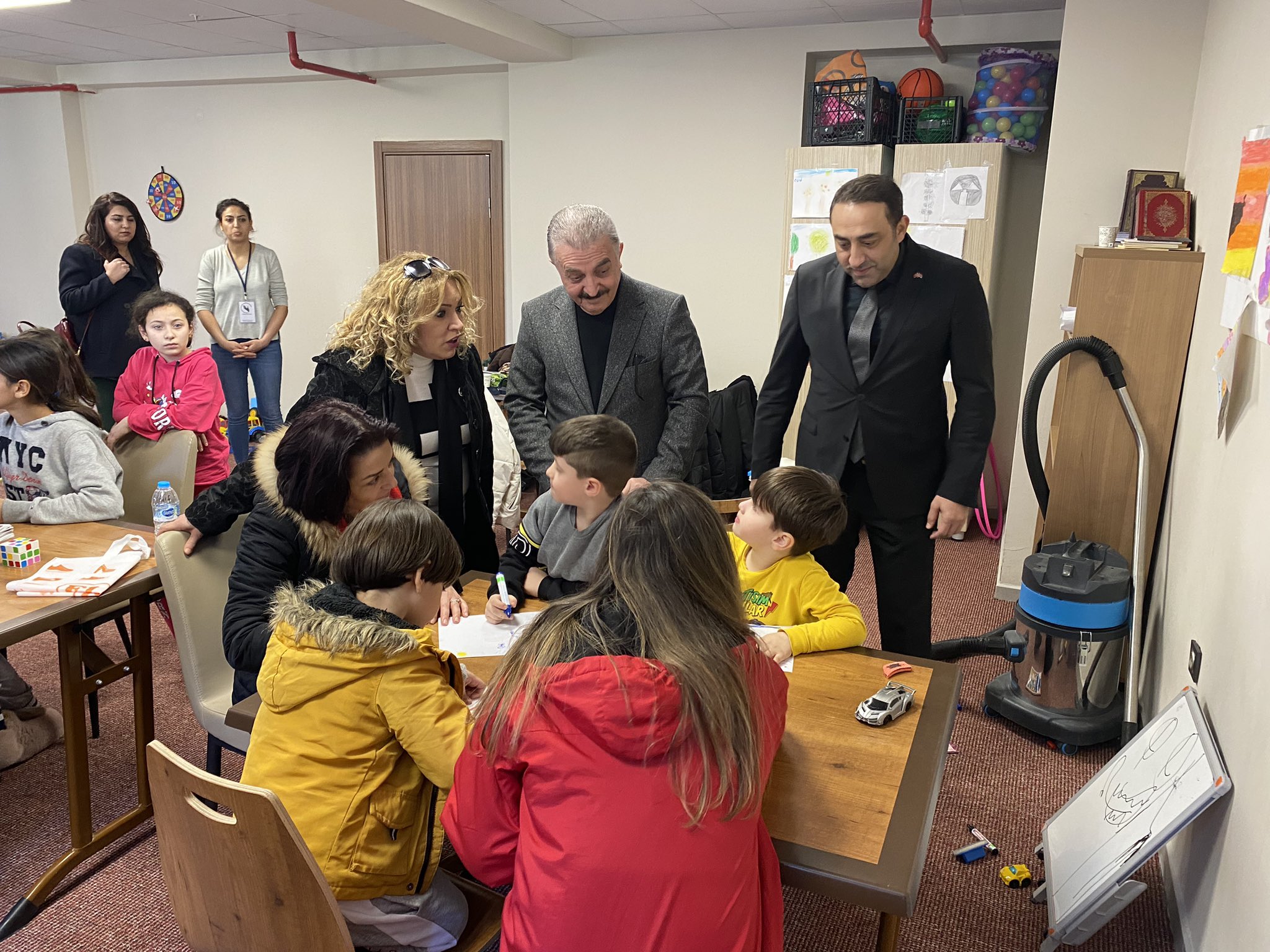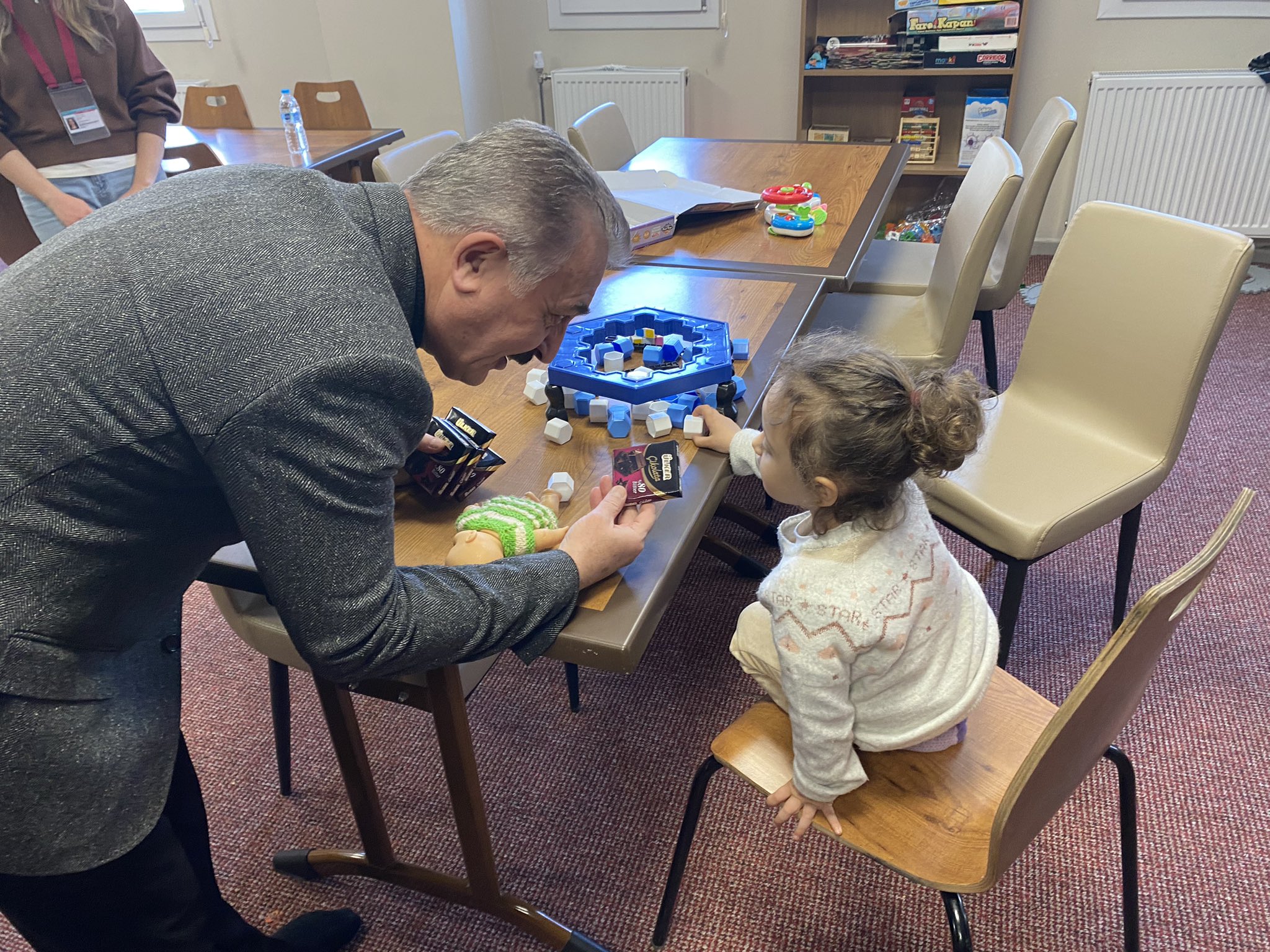 Çocuk oyun alanındaki depremzede çocuklarla yakından ilgilenen Büyükataman, onlarla sohbet etti. Çocuklara çikolata veren Büyükataman, ardından onlara oyuncak hediye etti.