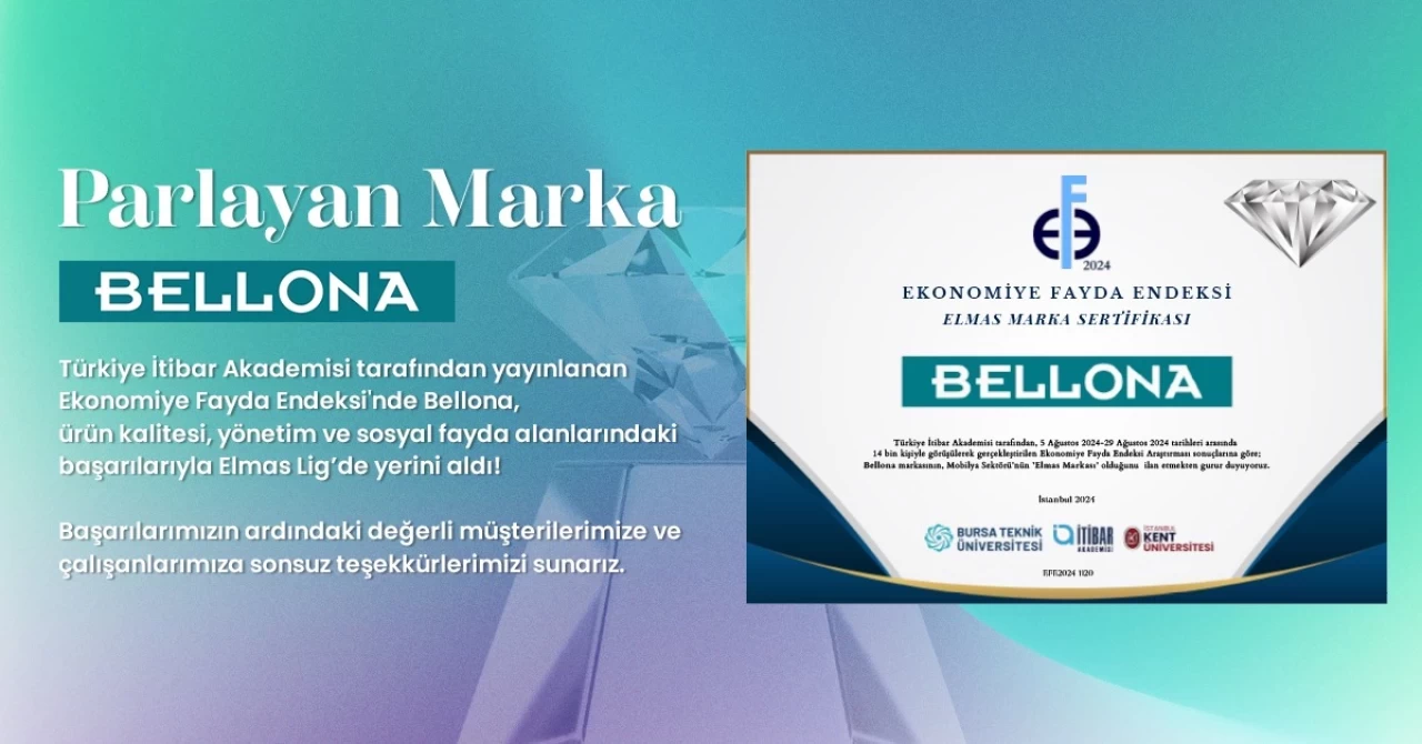 5-29 Ağustos 2024 tarihleri arasında 14 bin kişinin katılımıyla gerçekleştirilen Ekonomiye Fayda Endeksi Araştırması’nda mobilya sektöründe en prestijli ödüllerden biri olan “Elmas Marka” kategorisinde Bellona’nın adı öne çıktı.