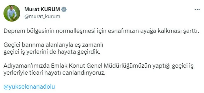 Bakan Kurum, şu ifadelere yer verdi: