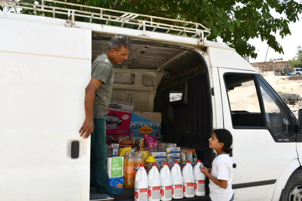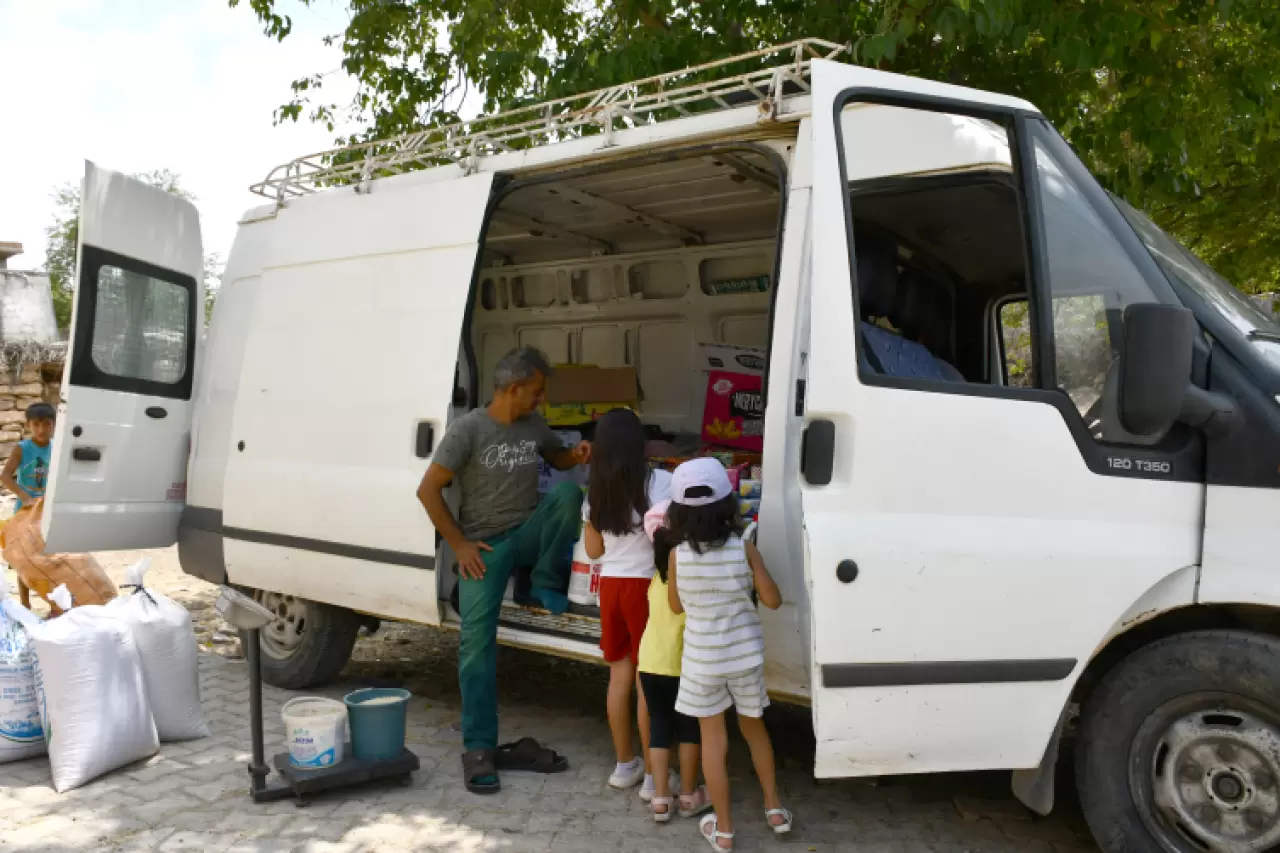 Çelik, temizlik, gıda, şekerleme ve atıştırmalık gibi ürünleri yüklediği minibüsüyle 16 yıldır kilometrelerce yol kat ederek marketi olmayan köylere ulaşıyor, insanların ihtiyaçlarını karşılıyor, çocukların yüzünü güldürüyor.