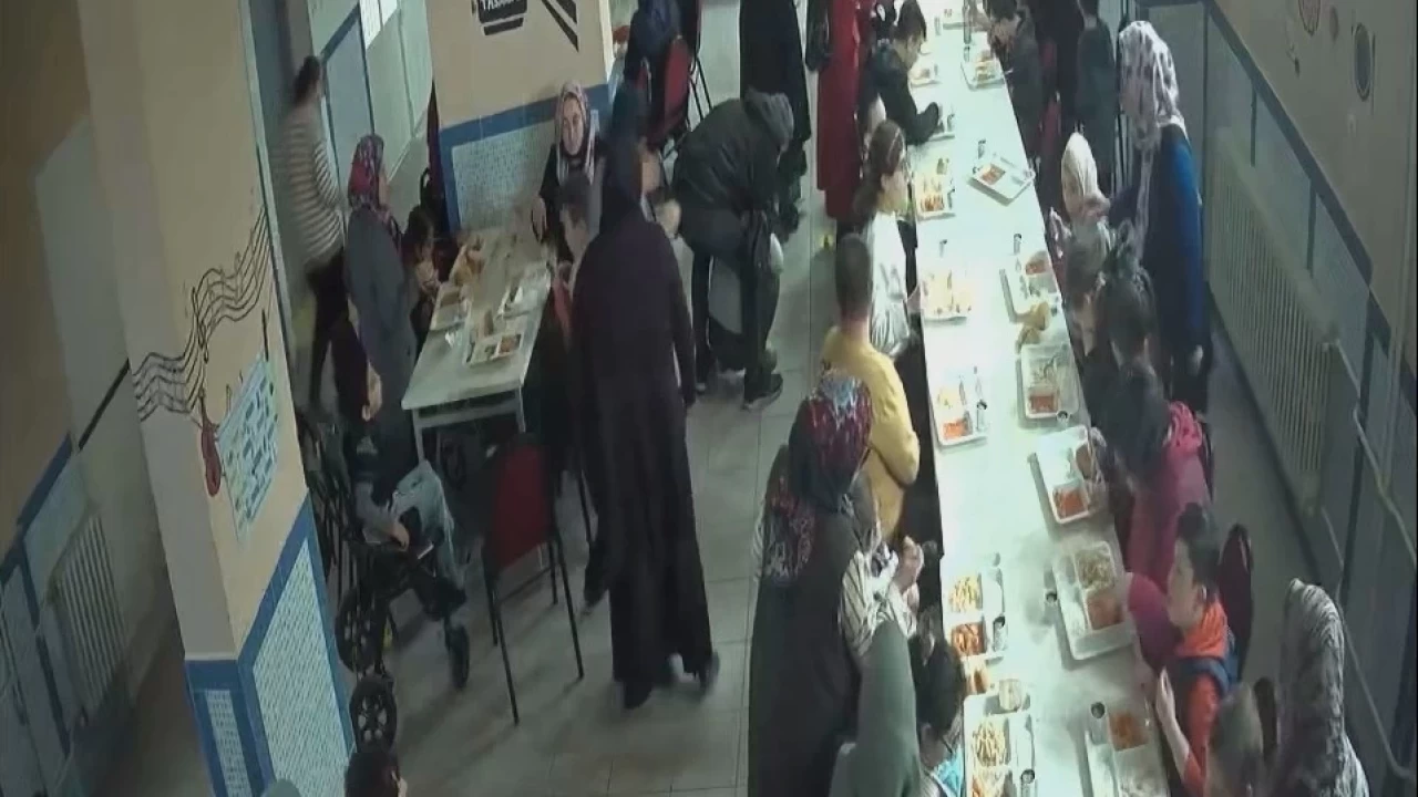 Olay, yemekhanedeki güvenlik kameraları tarafından kaydedildi.