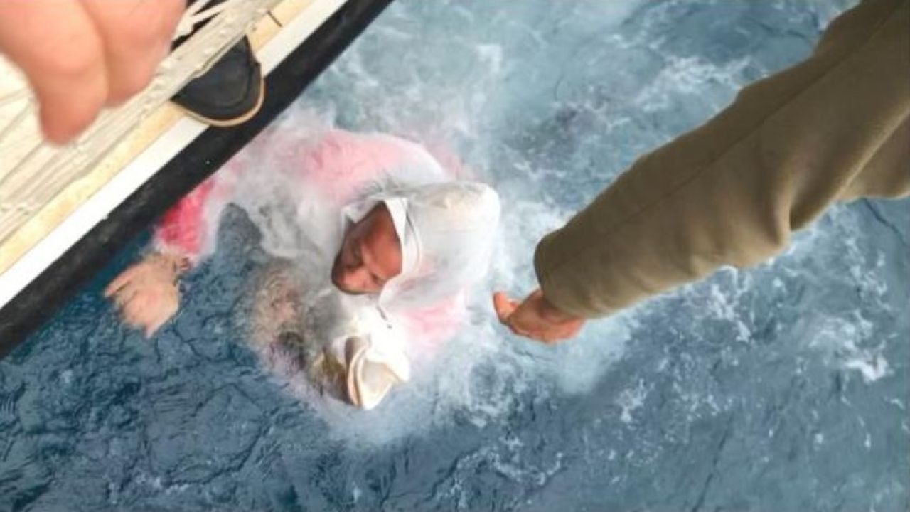 Balığın bir anda oltadan kurtulduğunu belirten Sarıoğlu, "Oltayı çekmeye çalışırken misina koptu. Kepçe kullanmayı denedik ancak başarılı olamadık. Ben de o heyecanla hemen suya atladım, ellerimle balığı tuttum." dedi.