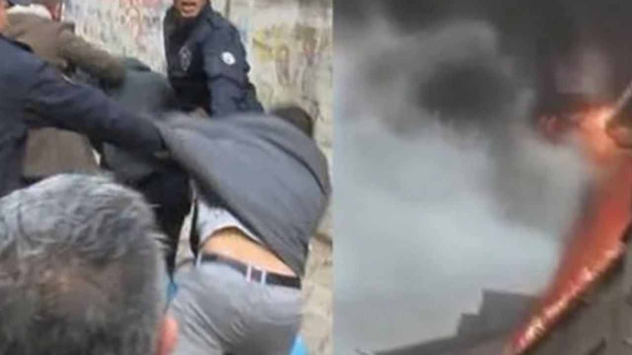 Olayı anlatan bina sakini, "Eve girdim. Yangın sırasında eşim telefonları unutmuş içeri girdim telefonları almaya, adam telefonu çalmış. Bende onu yakaladım" diye konuştu.