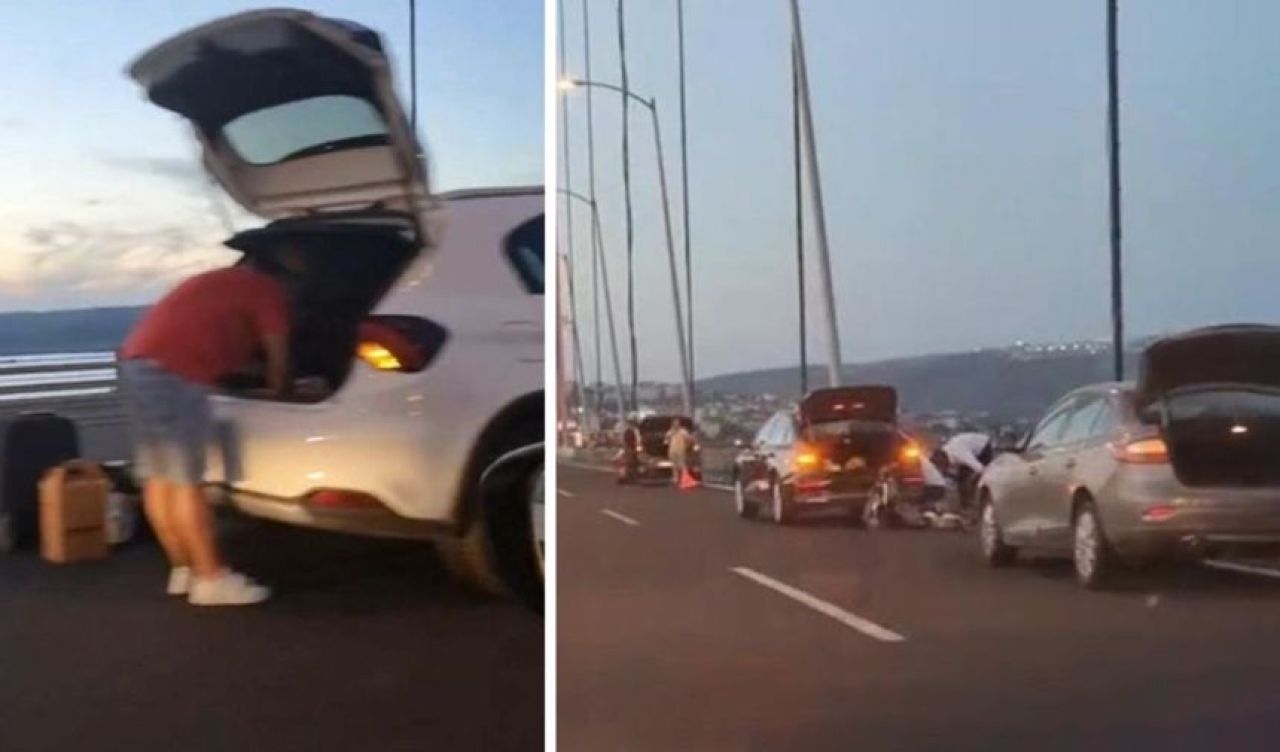 Tırın plakası tespit edilerek sürücüsüne "trafiği tehlikeye düşürmekten ve uygunsuz yük taşımadan" ceza uygulandı. Araçların köprü üzerinde peş peşe beklemesi vatandaş kamerasına da yansıdı.