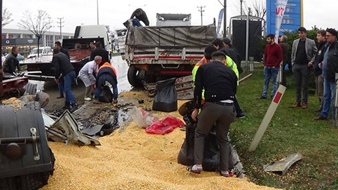 Araçları kontrollü bir şekilde petrol istasyonunun içerisindeki yoldan göndererek trafik akışını sağlamaya çalıştı. Hasar gören araçlar ise kaza yerine gelen vinç ve çekici yardımıyla kaldırıldı. Araçların kaldırılmasın ardından yol trafiğe tekrar açıldı. Öte yandan yola dökülen mısırlar ise vatandaşların yardımıyla poşetlere doldurularak tekrar tıra yüklendi.