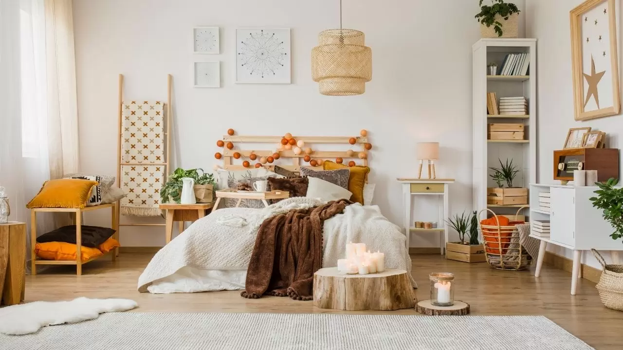 Renkler: Toprak tonları, yumuşak krem ve sıcak ahşap renkleri.