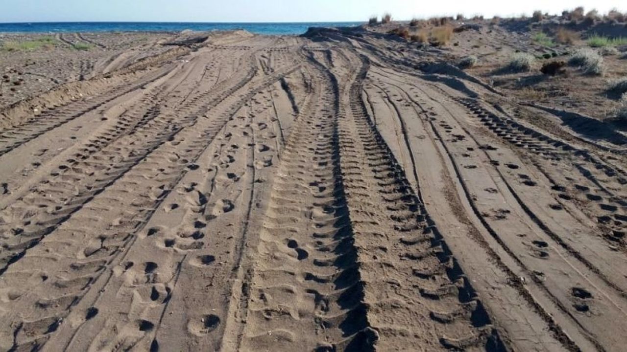 Beykonak sahilinde iş makinesiyle yapılan yol açılma çalışması sırasında, daha öncedem tespit edilen, çubuklar ve kafesler ile işaretlenen koruma altındaki deniz kaplumbağası yuvaları zarar gördü.